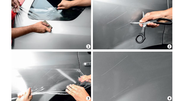 Escolhemos uma dessas películas para fazer um teste contra riscos. A marca selecionada foi a Oracal, uma das mais vendidas (e baratas) do mercado. Para o teste, levamos um automóvel prata a uma oficina da rede Preto Fosco, em São Paulo, que é revendedora do produto. Contamos ainda com a ajuda do especialista João Contreras, gerente da oficina de funilaria e pintura Contrecar, na ativa há mais de 20 anos.