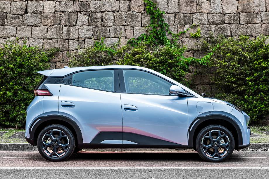 No visual, há outras três novidades discretas. Além dos neutros branco (Apricity White) e preto (Polar Night Black), e do berrante verde (Sprout Green), o Dolphin Mini agora pode ter a carroceria em um suave tom de azul metálico (Glacier Blue). As rodas também são novas, embora o desenho seja semelhante ao anterior e mantenham as 16 polegadas e os pneus 175/55. Por fim, a frase de efeito “Build Your Dreams”, nome da marca por extenso, foi substituída na tampa traseira apenas por “BYD”.