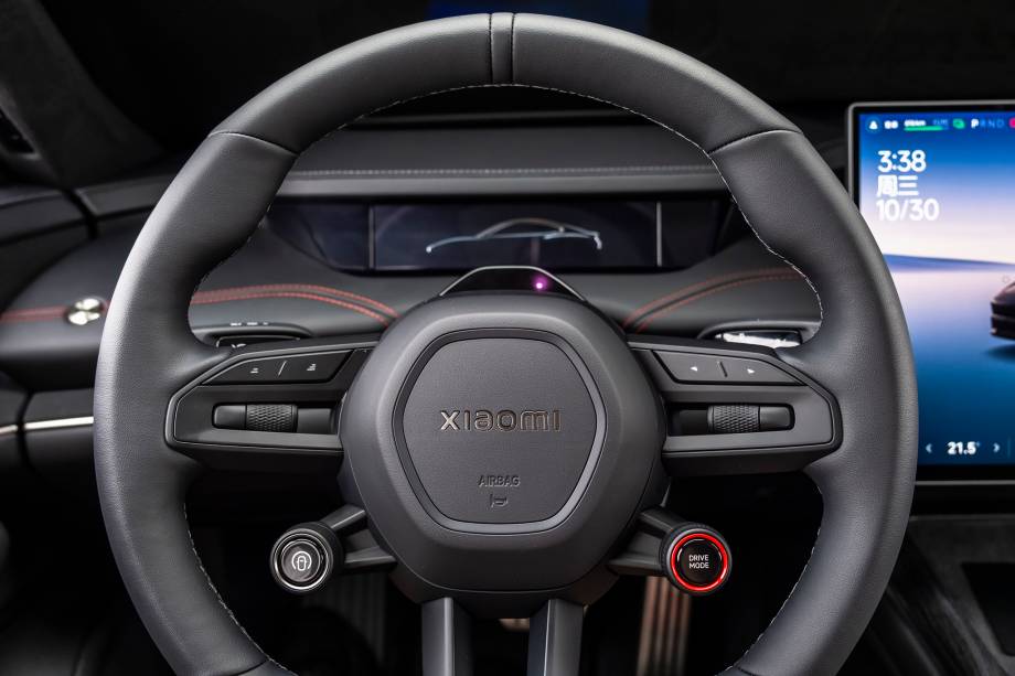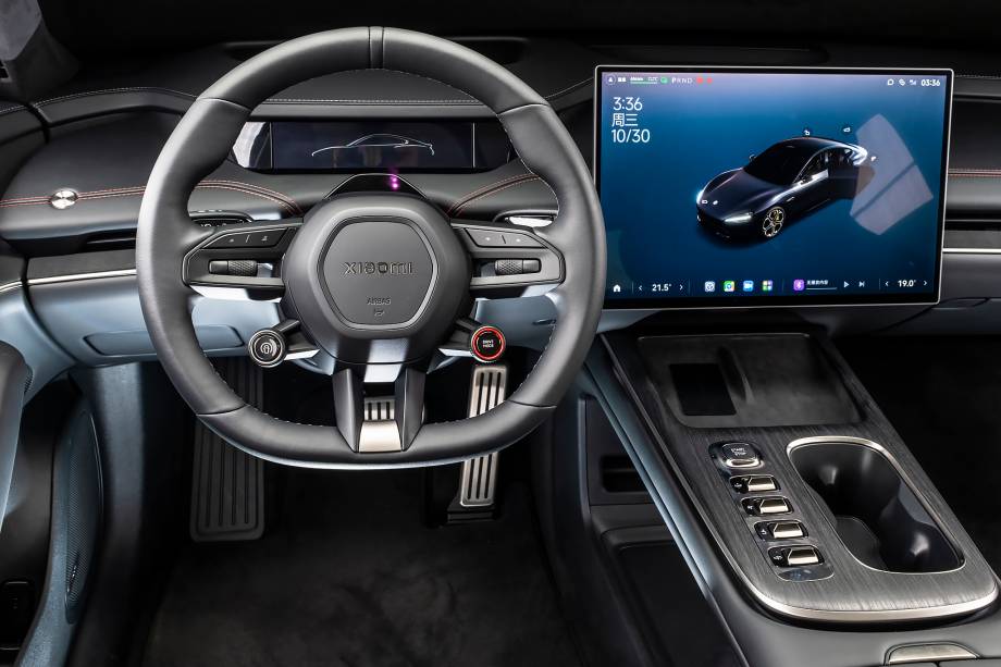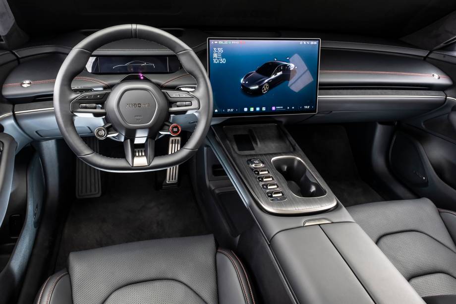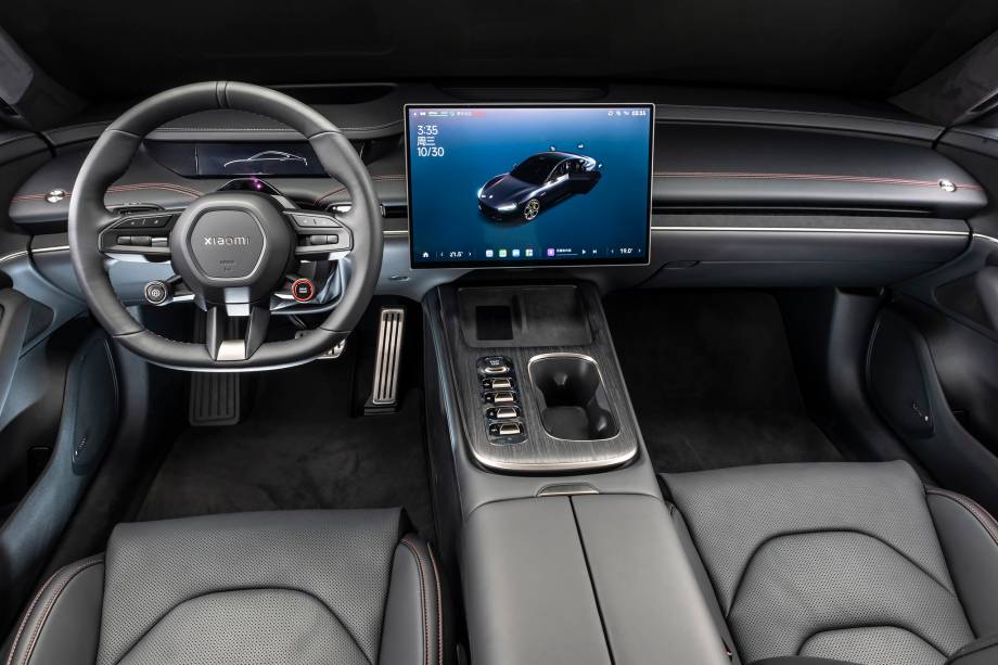 Na China, é possível integrar o Xiaomi SU7 ao ecossistema de internet das coisas (IoT) da Xiaomi. Não por acaso, toda a lógica da interface eletrônica do carro segue a lógica dos smartphones da marca e também usa o Hyper OS. Fazem questão de destacar que a tela de 16,1 polegadas tem resolução 3K e usa um Snapdragon 8295 desenvolvido especialmente para carros com foco em adaptação do sistema por meio de uma inteligência artificial.