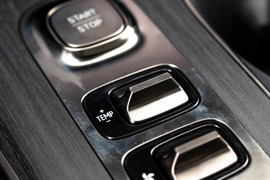 Você pode dar partida colocando o cartão de acesso no console e pisando no freio, mas também há um botão de partida. O ar-condicionado tem botões no console, junto com os que operam a abertura da asa traseira e a altura da suspensão pneumática. Até o porta-malas tem botão de abertura. Ufa!