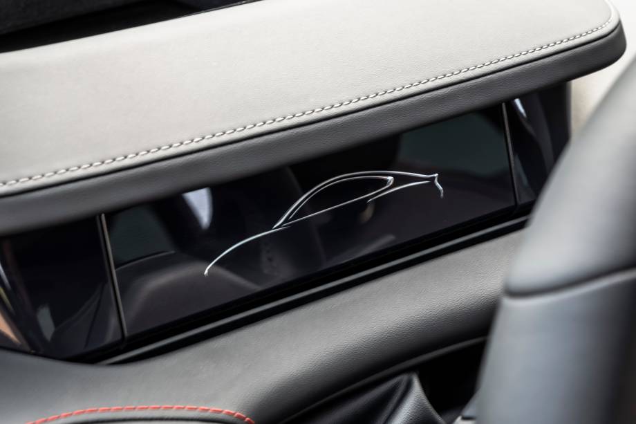 Por sinal, o quadro de instrumentos tem 7 polegadas e é exibida girando automaticamente assim que o carro é ligado em um gesto de boas vindas. Mas a velocidade é exibida, mesmo, no head-up display que projeta uma imagem que equivale a 56 polegadas no para-brisa.