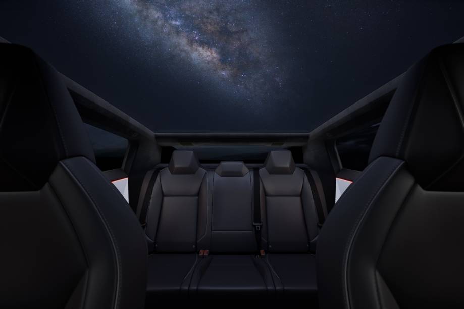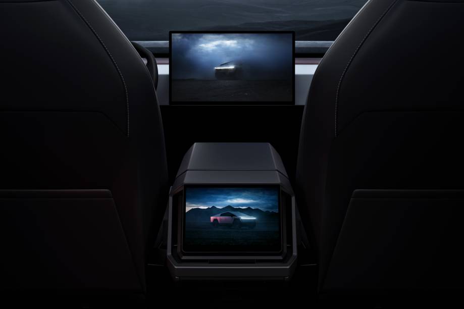 Pelo menos a Cybertruck é generosa tanto em espaço para as pernas quanto para os ombros e o que falta em altura na segunda fileira é, pelo menos visualmente, compensado pelo grande teto panorâmico. Quem se senta na segunda fileira de bancos tem sua própria tela de 9,4 polegadas.