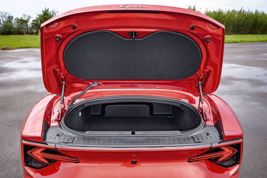 Sinceramente? É melhor viajar com a capota de lona fechada. Acima dos 80 km/h, os vãos que se formam nas laterais do compartimento onde o teto se esconde provocam muito barulho com o vento, principalmente para os ouvidos dos passageiros. Não há defletor que evite isso e abrir ou fechar os vidros não muda a situação. É uma pena, porque os engenheiros da MG conseguiram um jeito de guardar o teto sem invadir o porta-malas de 249 litros, que tem seu espaço isolado. Não é grande, mas não é ruim.