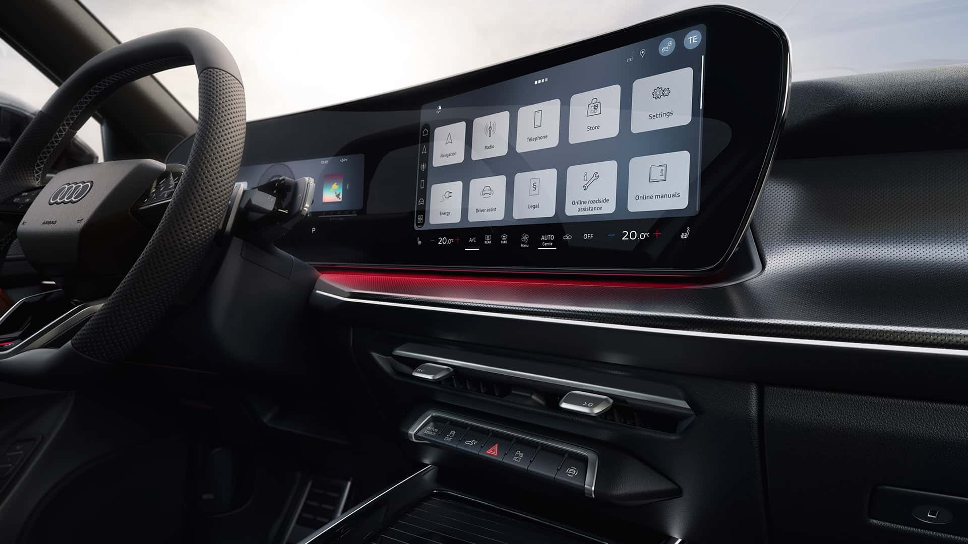Por dentro, o Sportback compartilha com o irmão “mais sisudo” o painel de instrumentos de 11,9 polegadas e a tela da multimídia de 12,8 polegadas integrada em um painel curvo. A tela central traz o Android Automotive com assistente de voz alimentado por inteligência artificial.