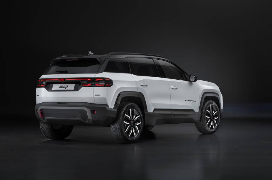 Mesmo sendo um dos modelos mais compactos feitos a partir dessa arquitetura, o Compass cresce 15 centímetros em comprimento. O Jeep Compass 2026 tem 4,55 metros e é 8,5 cm mais largo (1,90 m no total), o que lhe permite contar com um porta-malas 45 litros maior, agora com 550 litros de capacidade.