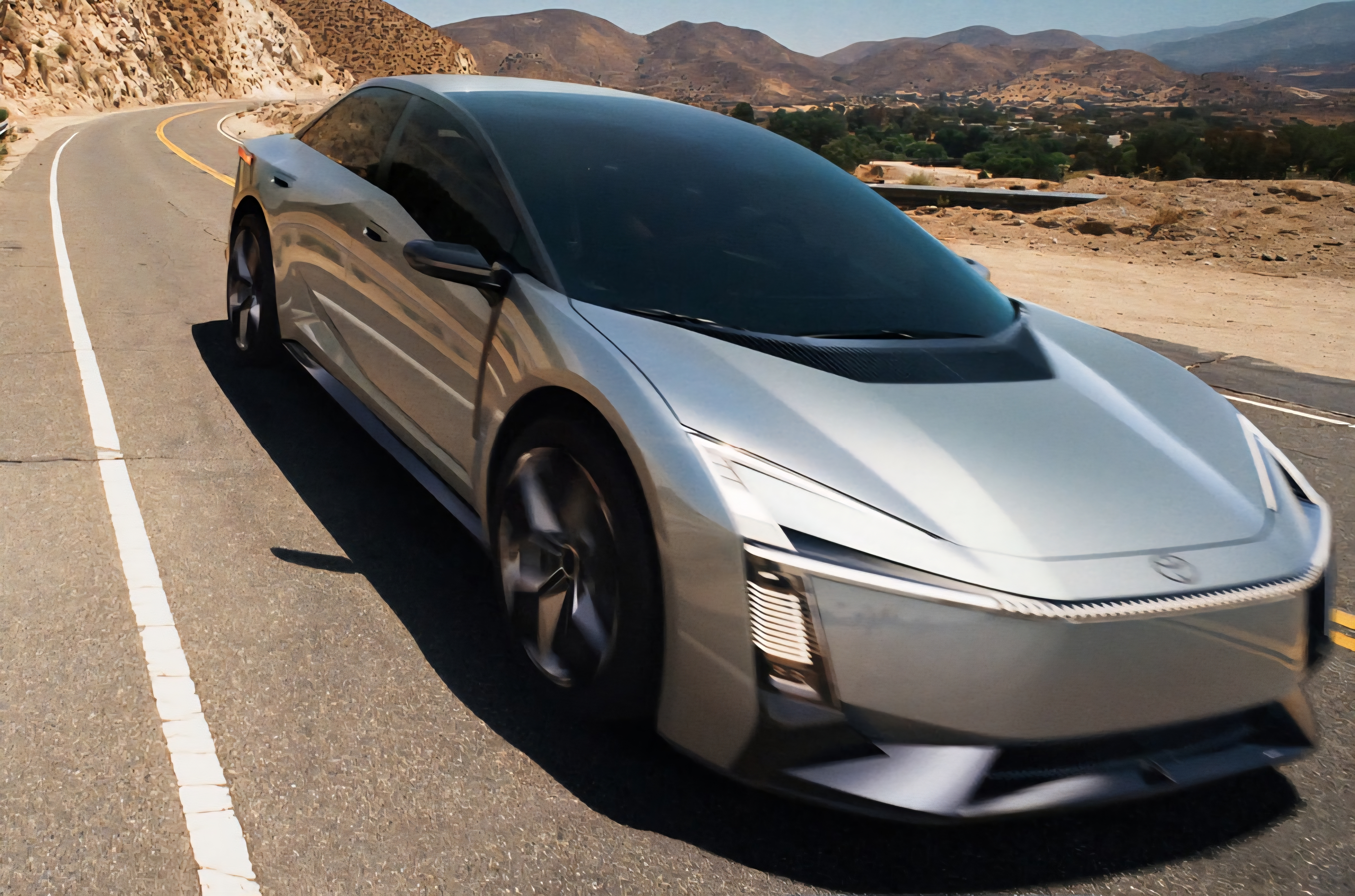 O conceito apresentado pode antecipar o design de uma dessas versões e se destaca por detalhes inéditos. Há semelhanças com o Prius e o RAV4 no formato dos faróis, mas a frente adota elementos próprios, como a barra iluminada e as luzes de LED nas extremidades do para-choque.