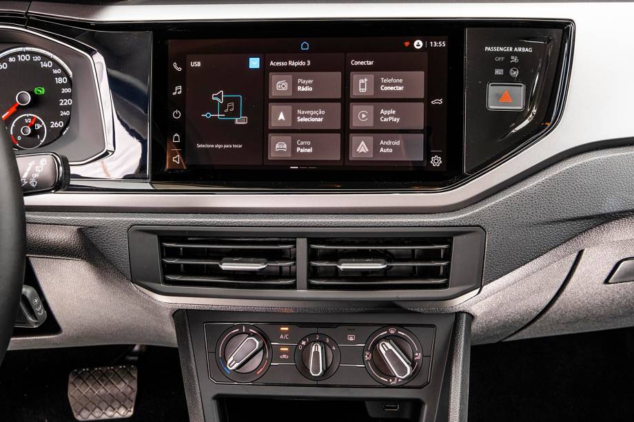 Como o constrangimento passou, a VW devolveu ao configurador do Nivus a imagem do painel que permite ver a central multimídia. Polo e Virtus com motores aspirados continuam sem a central de série e sem a foto do painel no configurador.