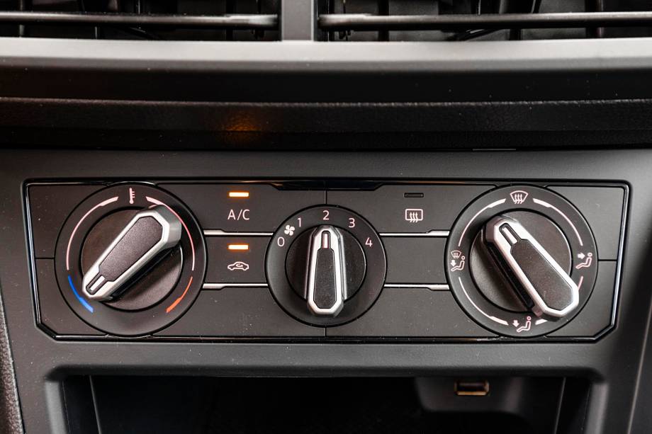 A novidade mais recente do Nivus Highline é o ar-condicionado Climatronic Touch, semelhante ao da versão europeia e reestilizada do Polo, com comandos sensíveis ao toque.
