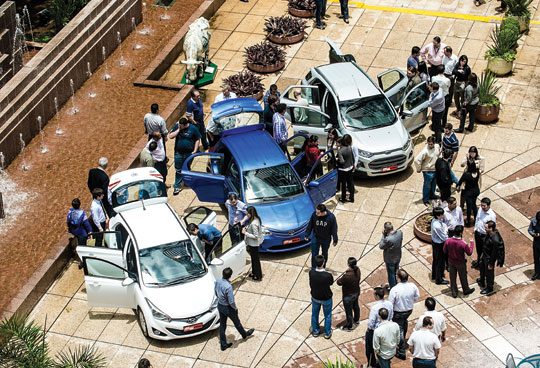 Todos os dias, na hora do almoço, funcionários e colaboradores da Editora Abril circulam pela praça interna do edifício. Aproveitamos o intervalo no fim de novembro para apresentar ali os estreantes da frota do Longa Duração: HB20, Etios e EcoSport. Assim como as fábricas realizam clínicas de opinião com clientes potenciais antes de cada lançamento, ficamos atentos às opiniões espontâneas dos abrilianos. Simplesmente colocamos os carros no pátio, abrimos as portas e ficamos antenados, ouvindo e anotando as observações que as novidades provocavam. Descobrimos que muita gente poderia fazer parte da equipe de QUATRO RODAS.
