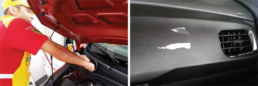 Pit stop: o acesso à tampa do tanquinho é difícil e os pneus estavam com calibragem excessiva; Revisão de entrega: além da carroceria suja, havia resto de cola e papel na tampa do porta-luvas