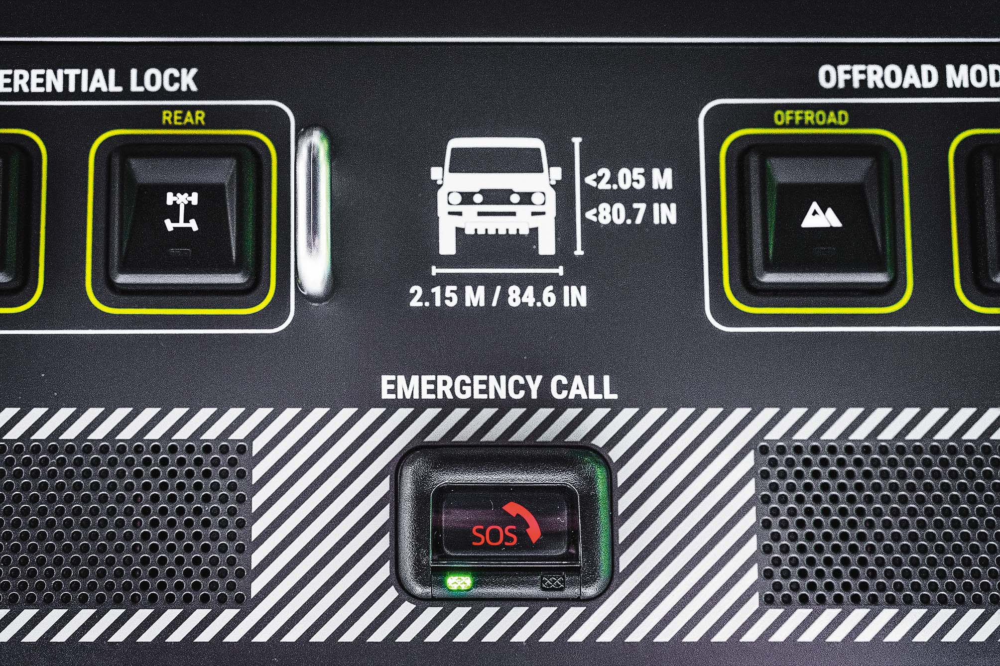 A alavanca usada para bloquear o diferencial central tem quatro posições (altas, baixas com ou sem bloqueio) e exige força para ser movida, combinando com a sua aparência também muito raiz, mas contrastando com a do seletor da caixa de velocidades, que é o mesmo comando eletrônico usado pela BMW.