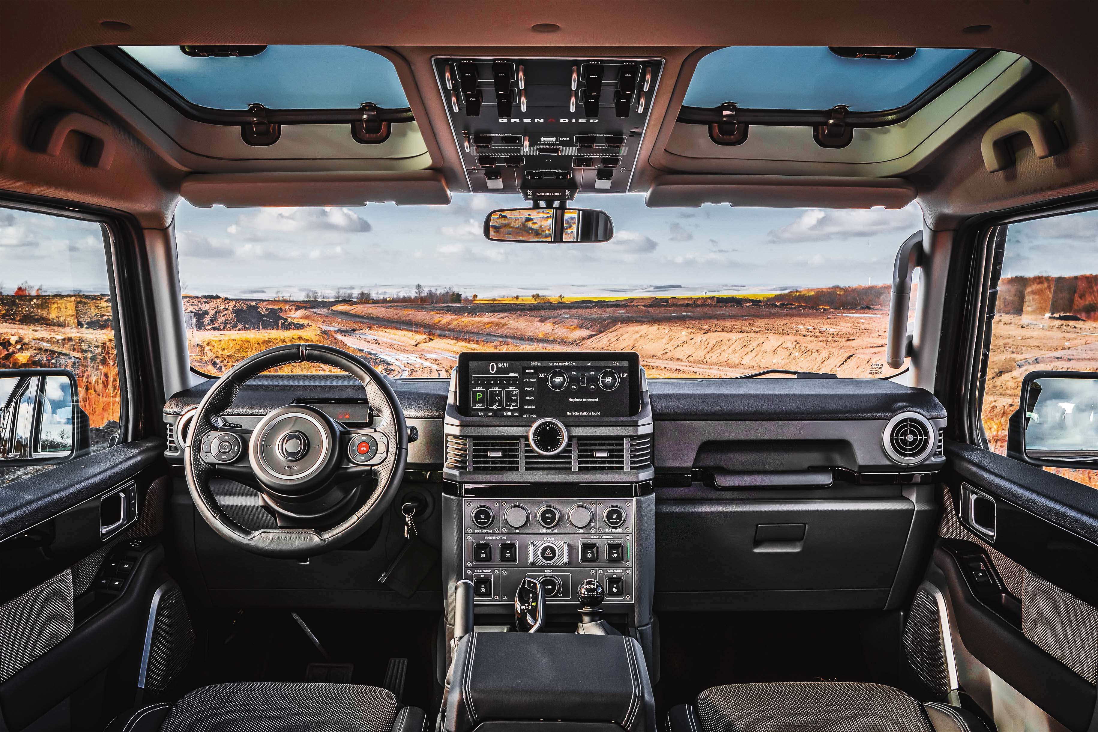 O interior não é muito espaçoso (considerando as dimensões exteriores) e os materiais de acabamento são bastante básicos, embora a qualidade de construção e a sensação de montagem e acabamento inspirem confiança. A área central do painel é repleta de botões grandes e volumosos, agrupados de acordo com a função, o que torna mais fácil a sua localização e utilização quando o Grenadier está em movimento ou mesmo se o motorista estiver de luvas.