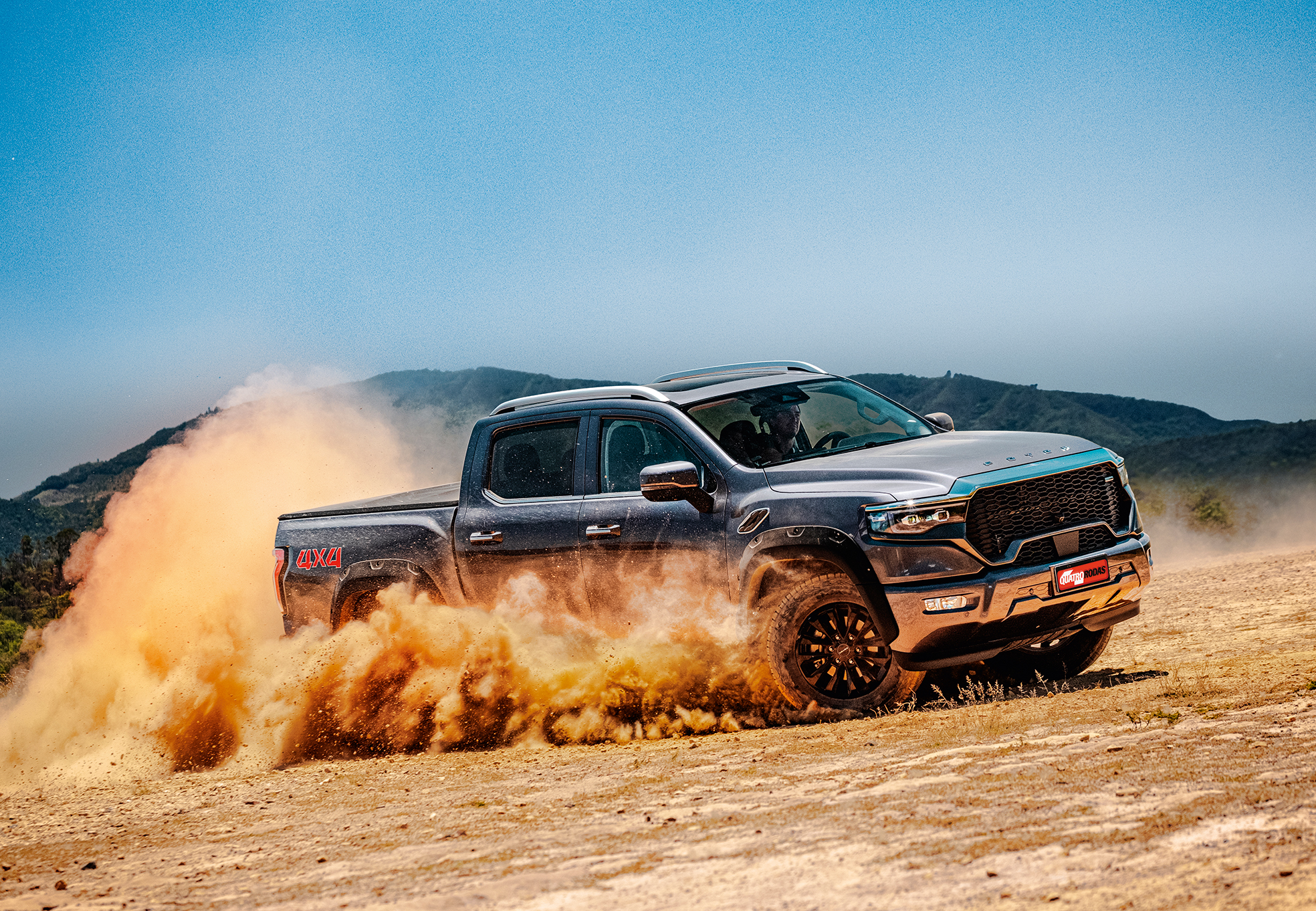 Neste momento, a Tunland é a única picape vendida no Brasil com a tecnologia híbrida leve. A combinação do motor 2.0 turbo diesel com um gerador entrega um total de 175 cv e 45,4 kgfm. São números bem abaixo da média do segmento de 200 cv e só superam os da Ford Ranger 2.0 (170 cv e 41,3 kgfm). O câmbio é automático de oito marchas. Com o torque chegando entre 1.500 e 2.600 rpm, o conjunto tem força para sair da inércia, mas perde fôlego acima de 60 km/h. O teste na pista confirmou a sensação, com a picape precisando de 14,7 segundos para ir de 0 a 100 km/h. De todas as picapes diesel atuais, a mais lenta testada por QUATRO RODAS foi a Titano 2025 (13,4 s).