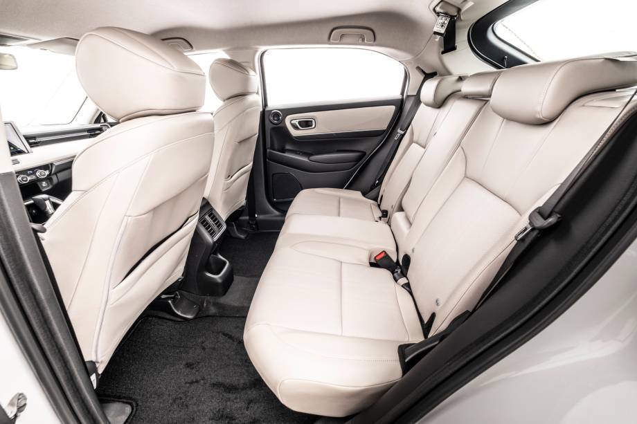 Para notar outro segredinho, só com rivais por perto. O espaço interno do HR-V com seus 2,61 m de entre-eixos é equivalente ao de médios. Na verdade, até maior para quem viaja no banco traseiro: são 98 cm de espaço para as pernas em medição padronizada, contra 90 cm no Compass, 92 cm no Corolla Cross e 95 cm no Taos, que também tem largura equivalente à do HR-V, enquanto os demais são até 2 cm mais estreitos. Todos os outros, com exceção do Compass, têm vão para a cabeça maior, porém.
